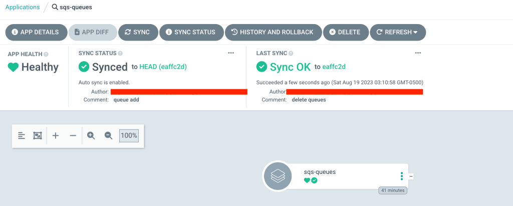 This is extremely important, you don’t want to see unexpected costs in your AWS bill. GitOps makes it even smooth to cleanup. Simply delete the YAML files created under sqs-queues directory and then run argocd app sync sqs-qeueues --prune, this will delete the resources whose manifests you just deleted.