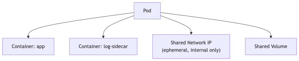 - Each Pod gets its own IP address inside the cluster’s internal network. That IP is not routable outside the cluster and changes every time the Pod is rescheduled. Never hardcode a Pod IP.