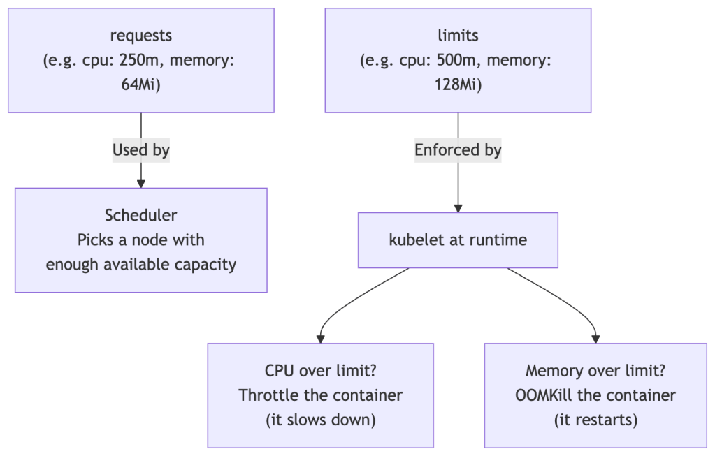Fix: Always set both requests and limits. Start conservative and tune based on observed usage.